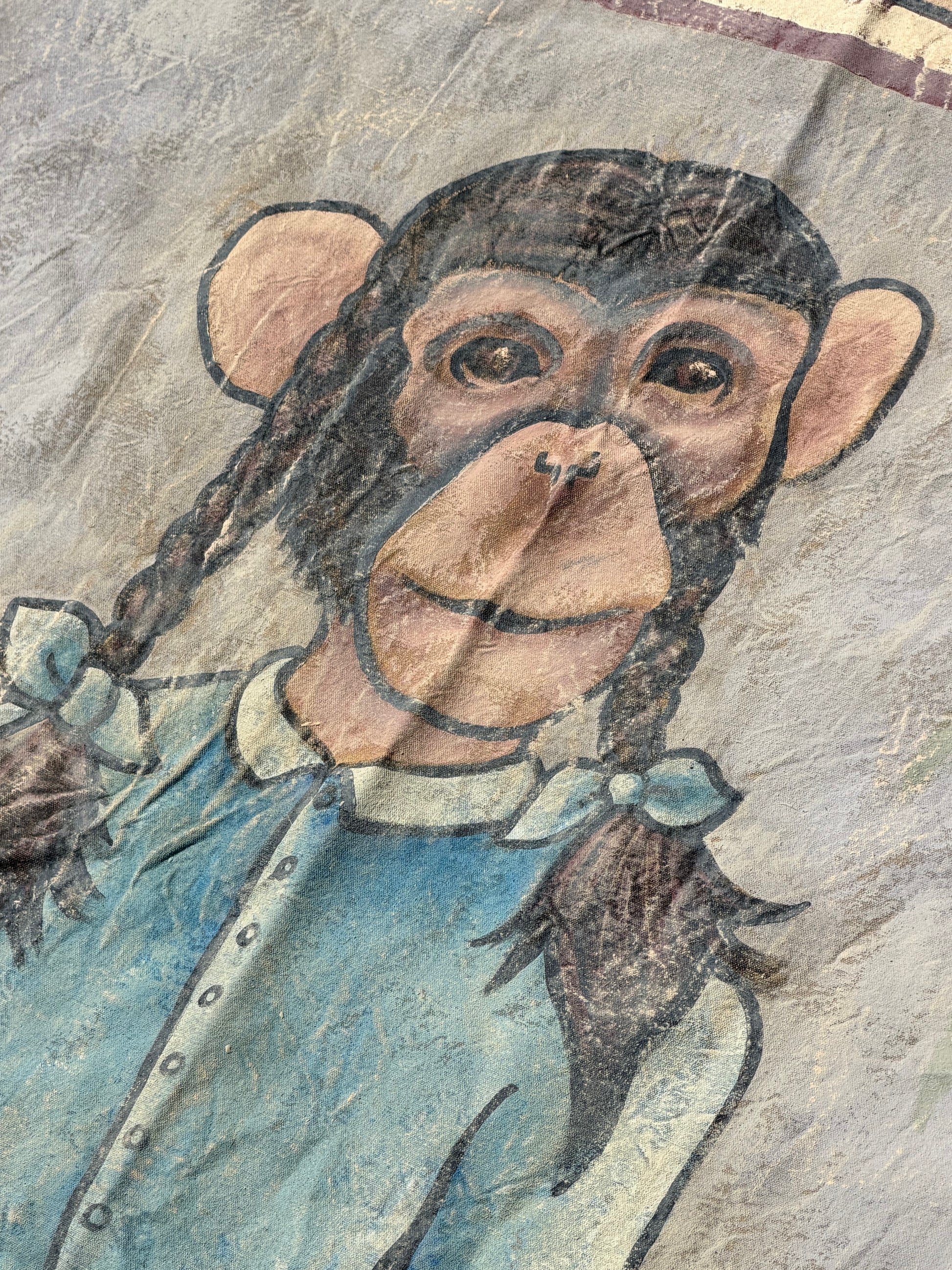 This is a production used circus banner from Doom Patrol starring Diane Guerrero, April Bowlby, Matt Bomer, Brendan Fraser and Timothy Dalton. This is hanging in the circus in season 2 episode 1. It is approximately 69" wide by 100" tall. It is hand painted cloth. It is made to look old but is in good condition relative to how it was on set. There are grommets in all 4 corners.