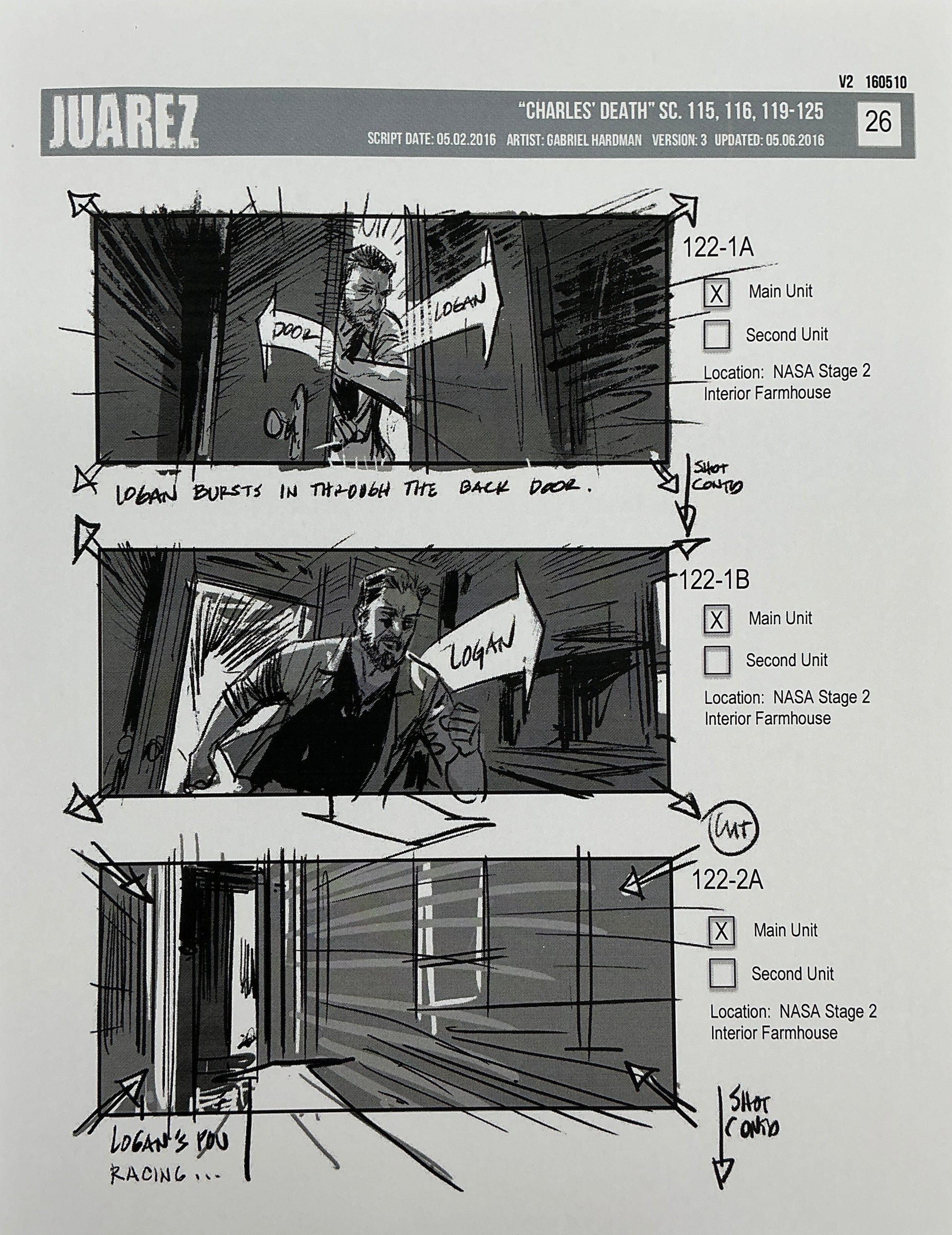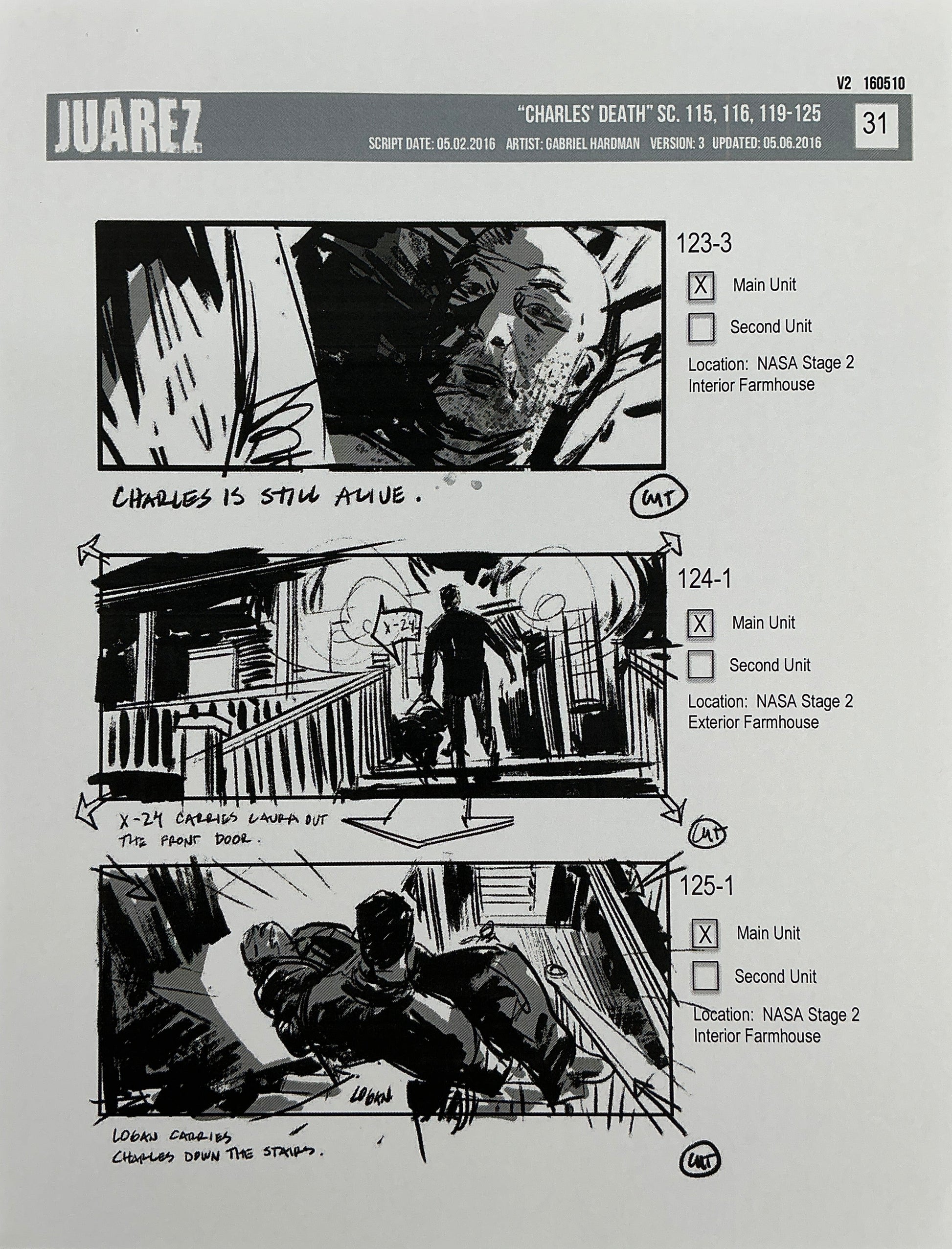 Storyboards Juarez Charle's Death Scenes 115-125 Logan (2017)